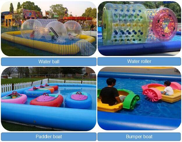 The inflatable pool can be for bumper boat, paddler boat, water ball, water roller, water park, etc
