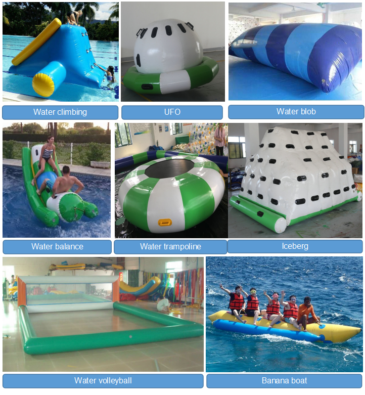 We supply inflatable water park, advertising inflatables, inflatable water slip, slide, bouncer, sport games and related products.