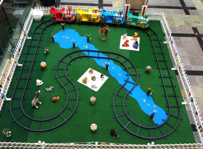 The train can be put indoor or outdoor, both are available, and track size can be customized, depends on your site, we can design for you.